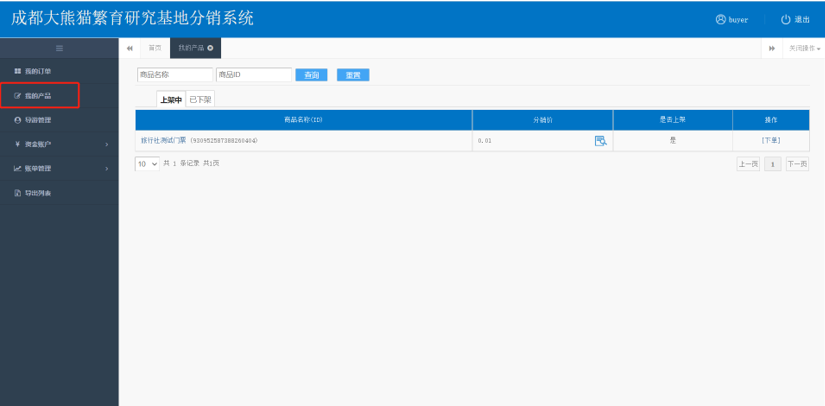 菜单栏中选择我的产品, 可查询所有上架产品